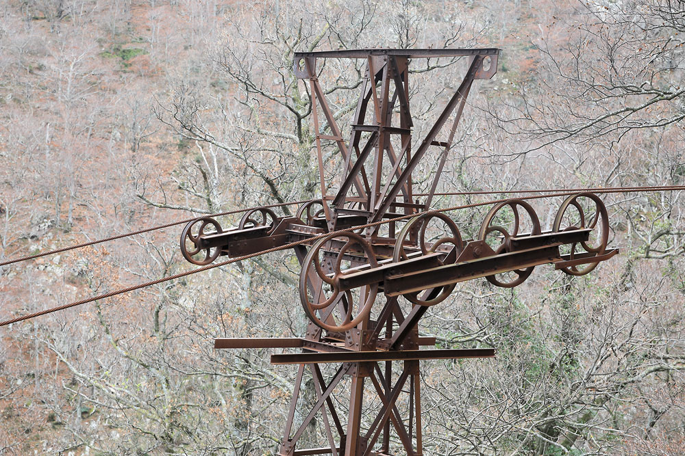 30/12/2022 | Pylône du câble transbordeur de la Farga pour descendre les grumes de bois / Sorède