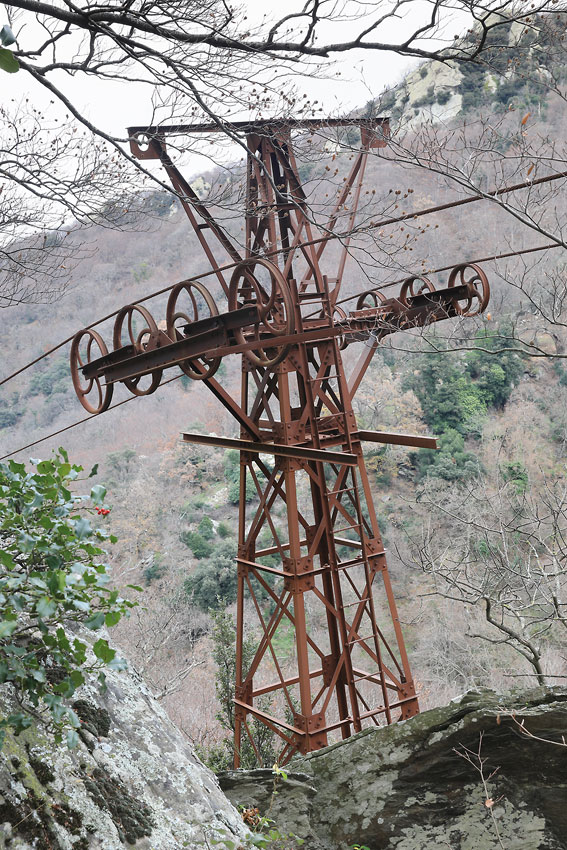 30/12/2022 | Pylône du câble transbordeur de la Farga pour descendre les grumes de bois / Sorède