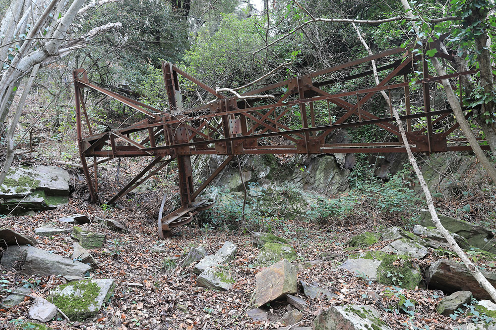 30/12/2022 | Pylône à terre du câble transbordeur de la Farga pour descendre les grumes de bois / Sorède