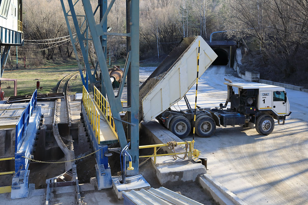 28/03/2023 | Un camion de magnésite brute provenant du fond vide son chargement dans le concasseur primaire