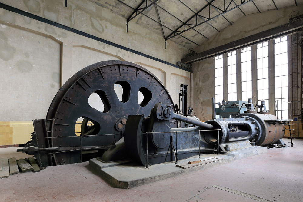 15/08/2018 | Mine Anna siège I : machine d'extraction à vapeur 'ouest' du puits Eduard (poulie Koepe monocâble)