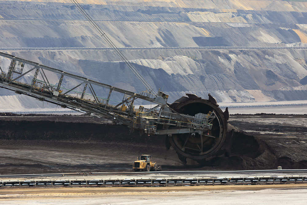 20/08/2017 | Extraction du lignite par une excavatrice à godets dans la mine à ciel ouvert de Garzweiler II - détail sur la roue à godets