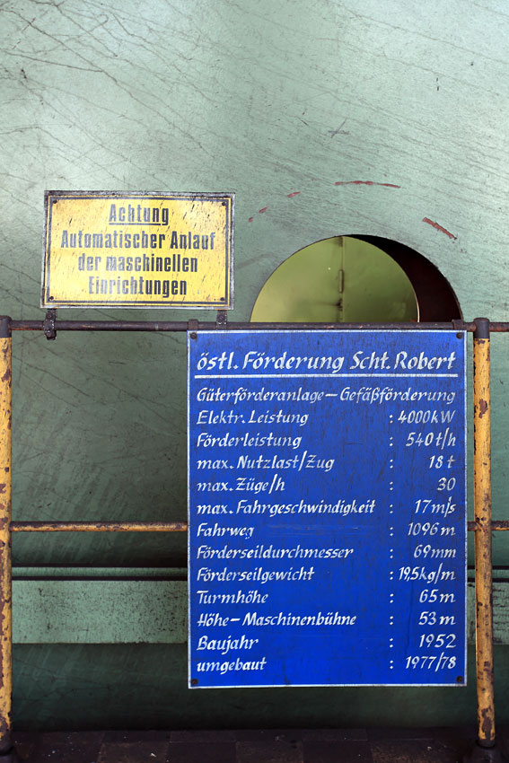 29/03/2011 | Panneau d'avertissement et caractéristiques de la machine d'extraction Ouest du puits Robert