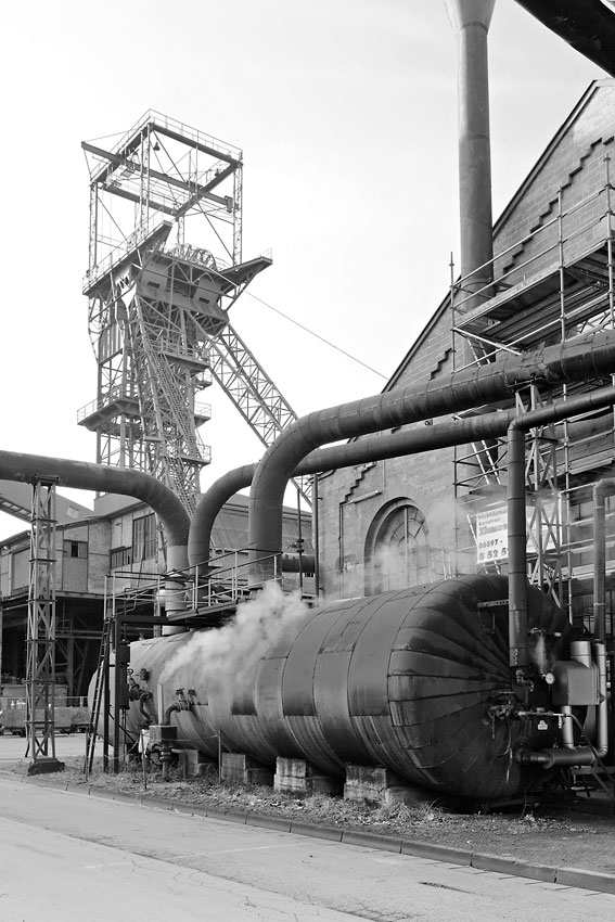 22/03/2013 | Chevalement du puits Duhamel ; au premier plan le réservoir de vapeur de la machine d'extraction