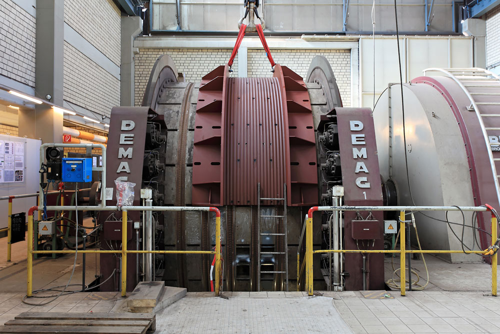 22/03/2013 | Poulie Koepe à 6 câbles de la machine d'extraction du puits Nord ; en cours de transformation en simple tambour