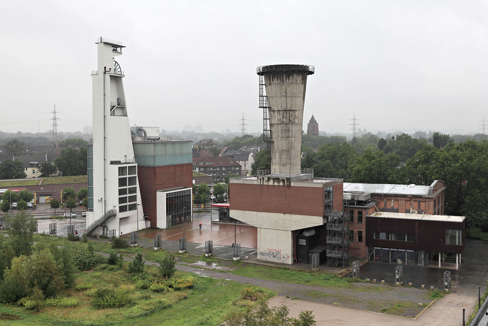 17/08/2015 | Chevalement, bâtiment de la machine d'extraction et ventilateur d'aérage du puits n°4, vus depuis le chevalement du puits n°9