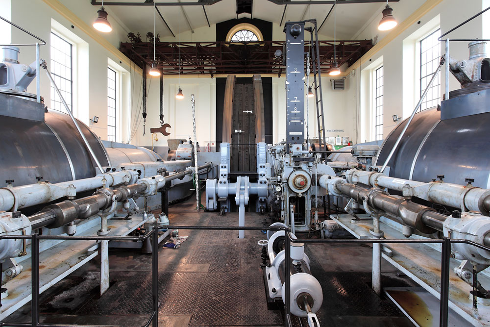 17/08/2015 | Machine d'extraction à vapeur 'sud' du puits n°9 : poulie Koepe et indicateur de profondeur