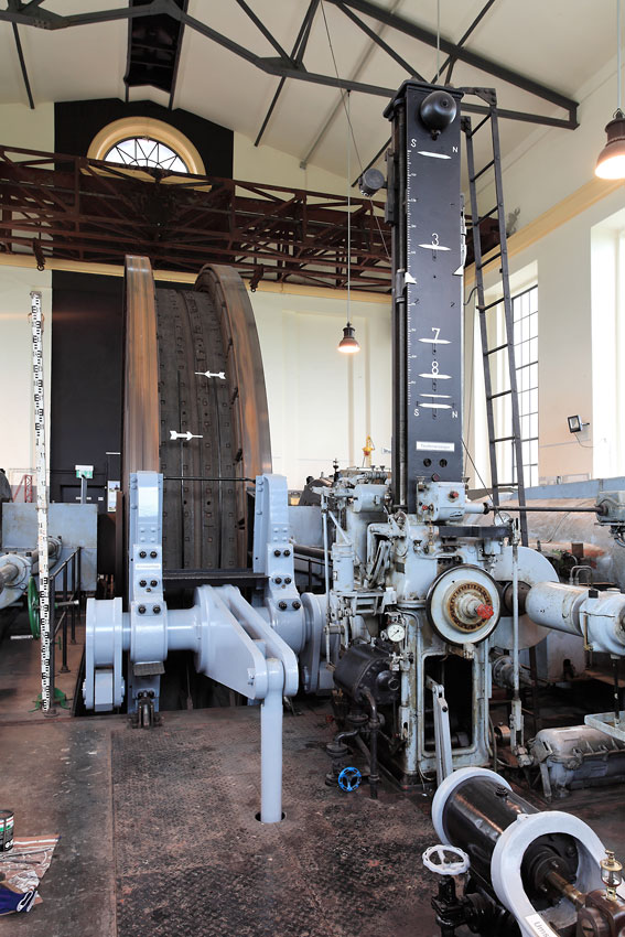 17/08/2015 | Machine d'extraction à vapeur 'sud' du puits n°9 : poulie Koepe et indicateur de profondeur