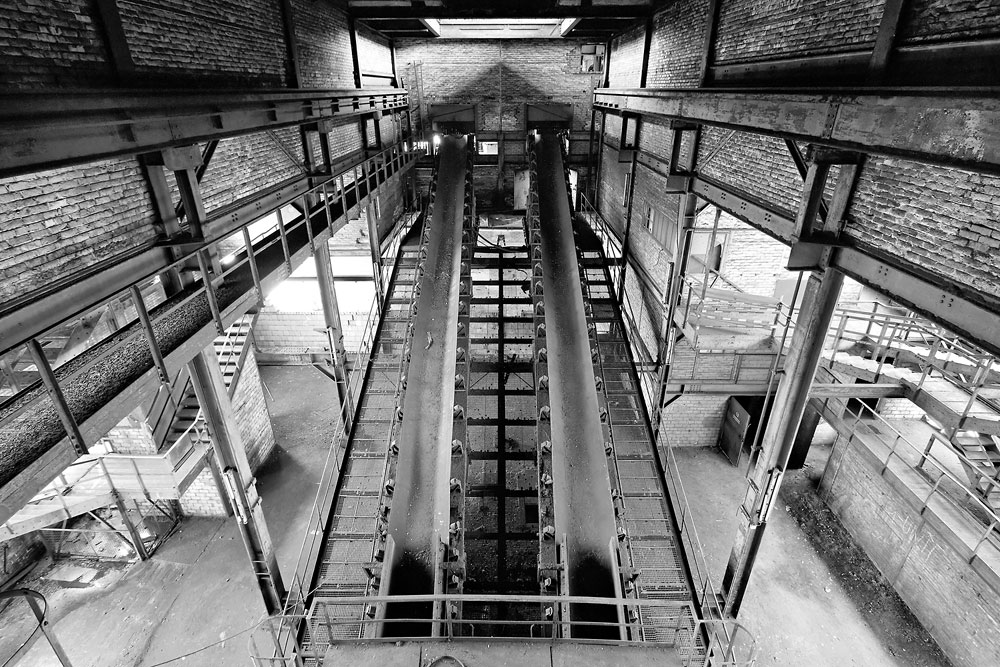17/08/2015 | Recette jour du puits n°7 : vue plongeante sur les deux convoyeurs provenant des skips