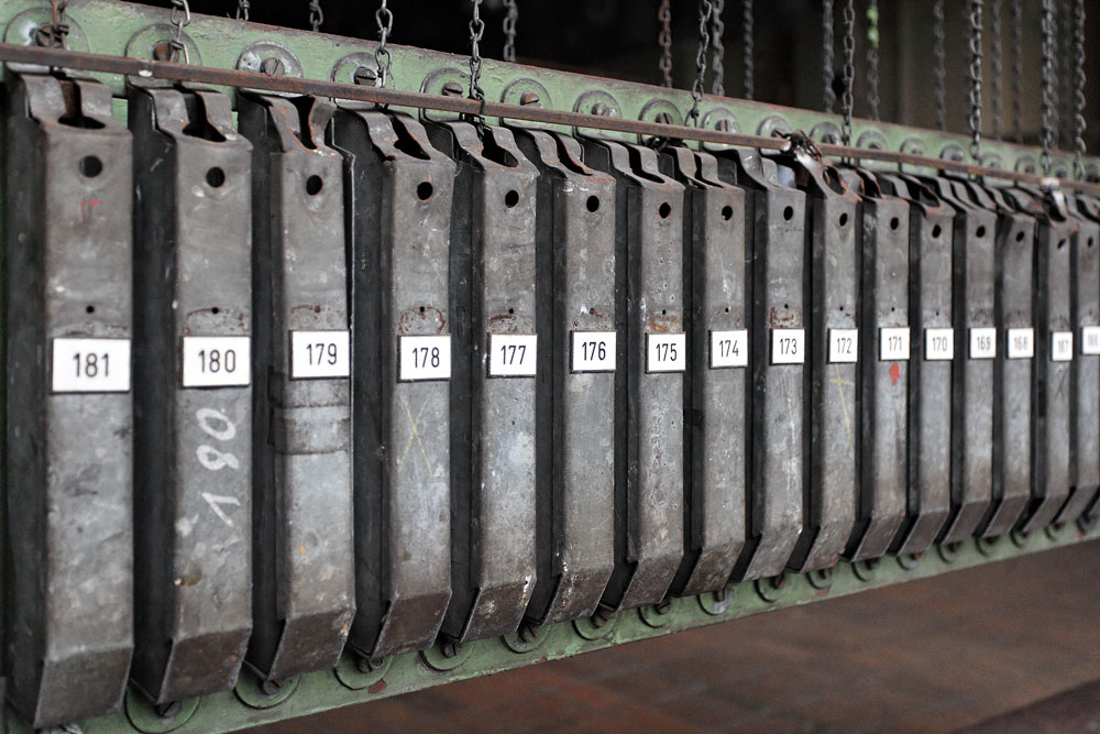 17/08/2015 | Salle des pendus : système de verrouillage des chaînettes pour suspendre les vêtements, chaque mineur avait son numéro