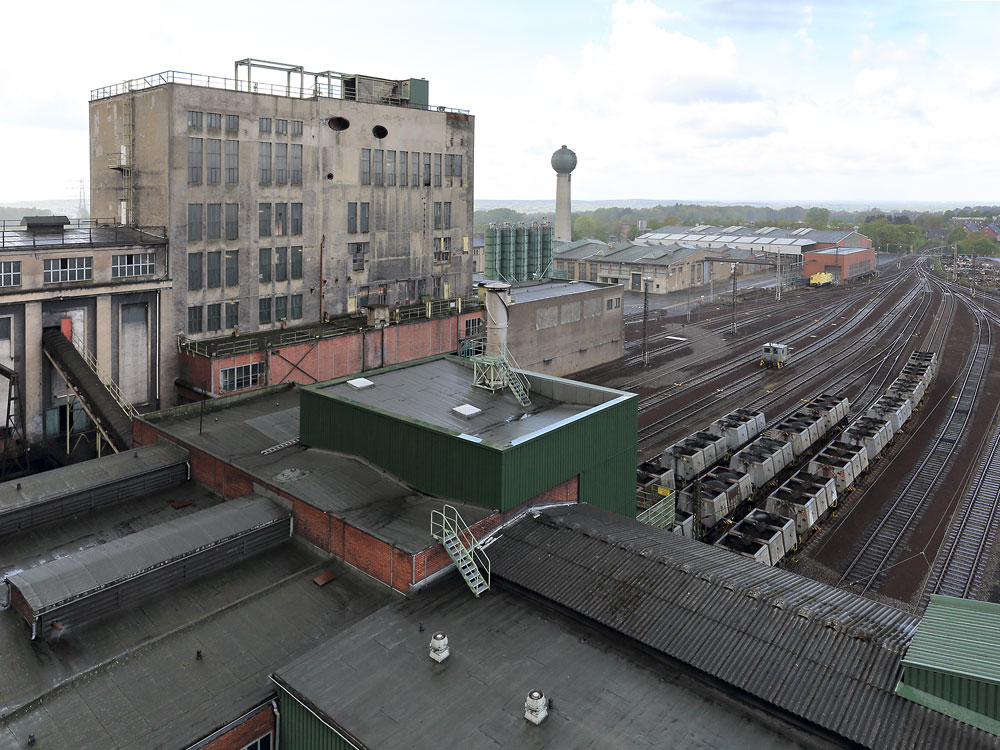 26/04/2018 | Siège von Oeynhausen : l'ancienne briquetterie et les voies ferrées de la mine vues depuis un bâtiment du lavoir