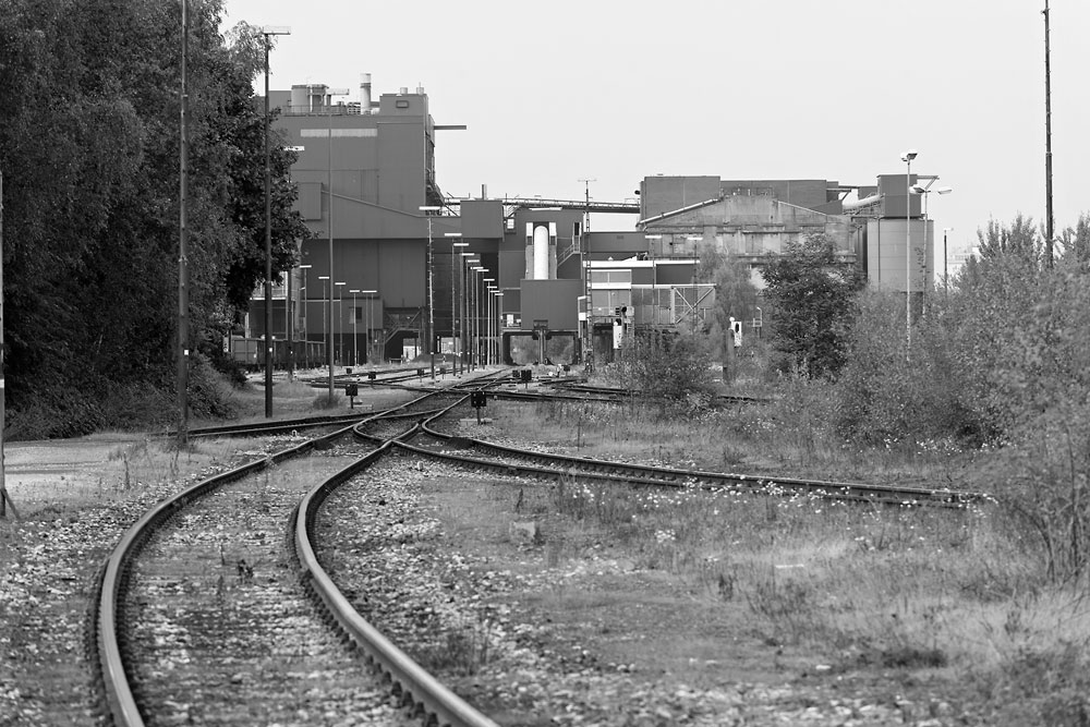 08/10/2013 | Voies ferrées pour la desserte de la mine ; au fond le lavoir - Zeche Friedrich Heinrich (Bergwerk West) / Kamp-Lintfort
