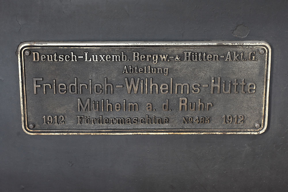 21/08/2014 | Machine d'extraction à vapeur 'est' du puits n°2 : plaque constructeur - Zeche Fürst Leopold / Dorsten