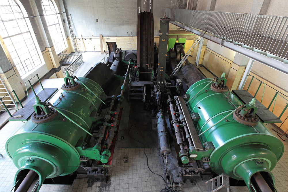21/08/2014 | Machine d'extraction à vapeur 'ouest' du puits n°2 : poulie Koepe et les 2 cylindres - Zeche Fürst Leopold / Dorsten