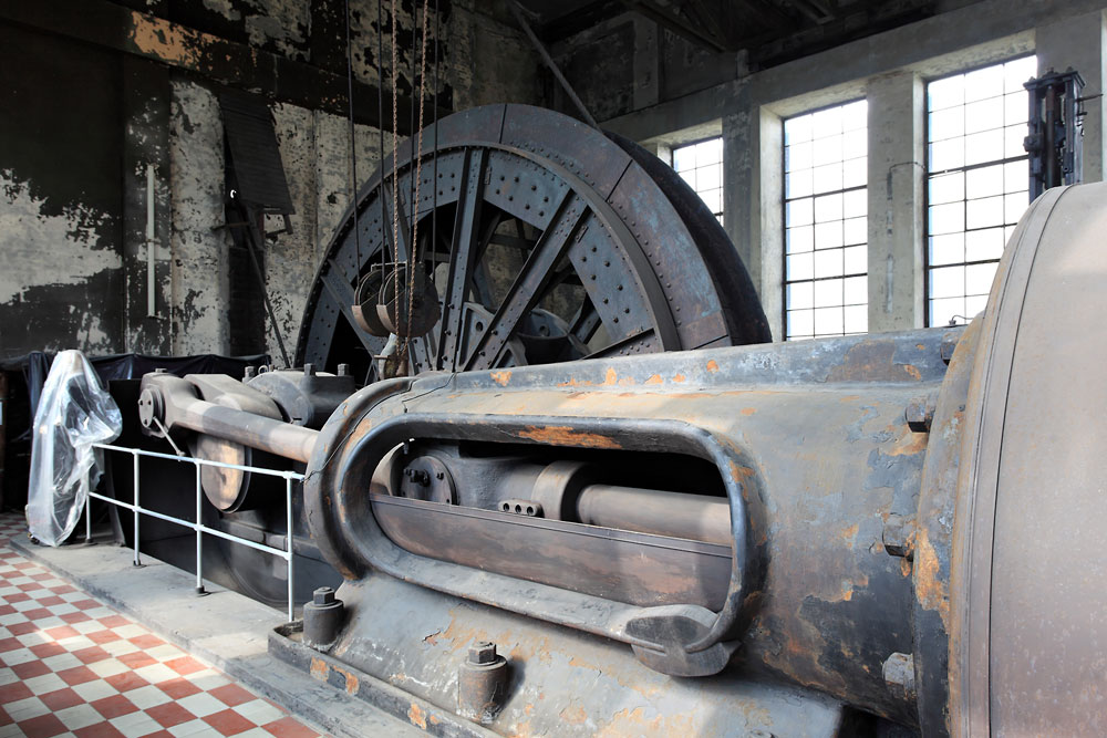 23/08/2014 | Machine d'extraction à vapeur 'Nord' du puits n°4 : poulie Koepe et bielle-manivelle - Zeche Gneisenau / Dortmund-Derne