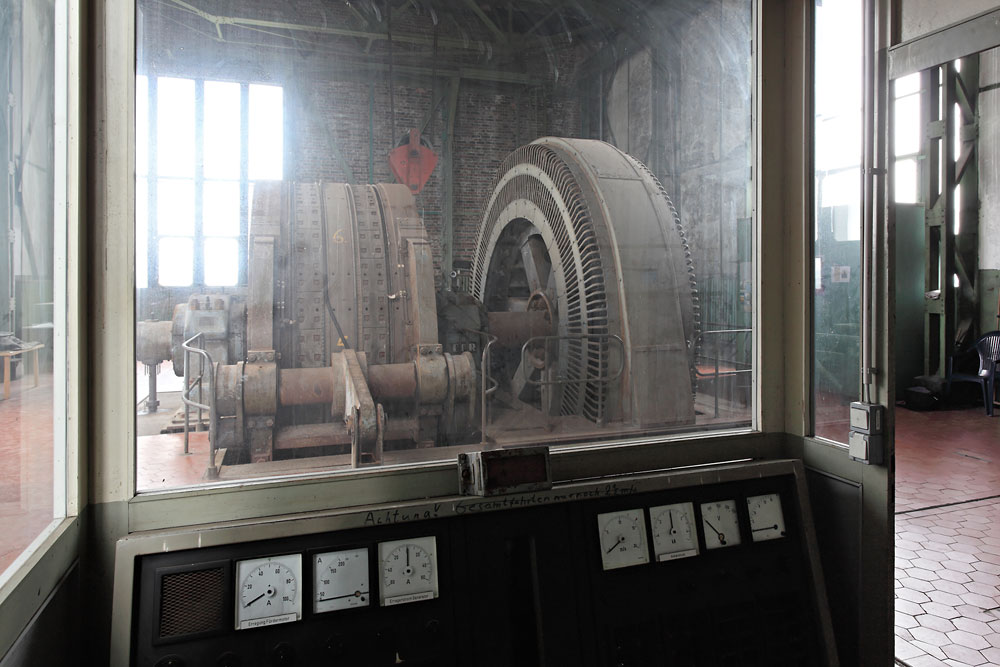 19/08/2015 | Machine d'extraction du puits n°4 (poulie Koepe quadricâble) vue depuis la cabine du machiniste - Zeche Königsborn / Bönen