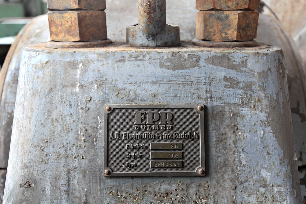 19/08/2015 | Machine d'extraction du puits n°4 : détail sur la plaque constructeur (Eisenhütte Prinz Rudolph) - Zeche Königsborn / Bönen