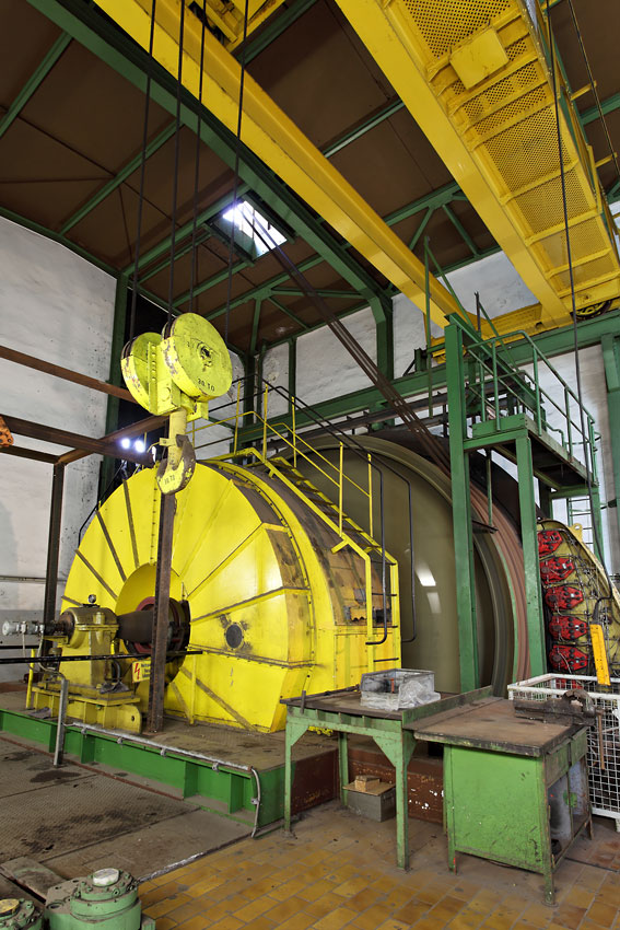 09/10/2013 | Machine d'extraction (poulie Koepe tricâble, en mouvement) du puits Grimberg n°2 - Zeche Monopol / Bergkamen