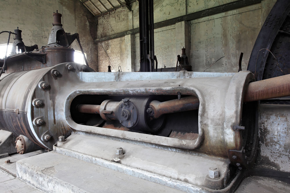 23/08/2014 | Machine d'extraction du puits n°1 : glissoir/tête de jonction entre la tige de piston et la bielle-manivelle - Zeche Radbod