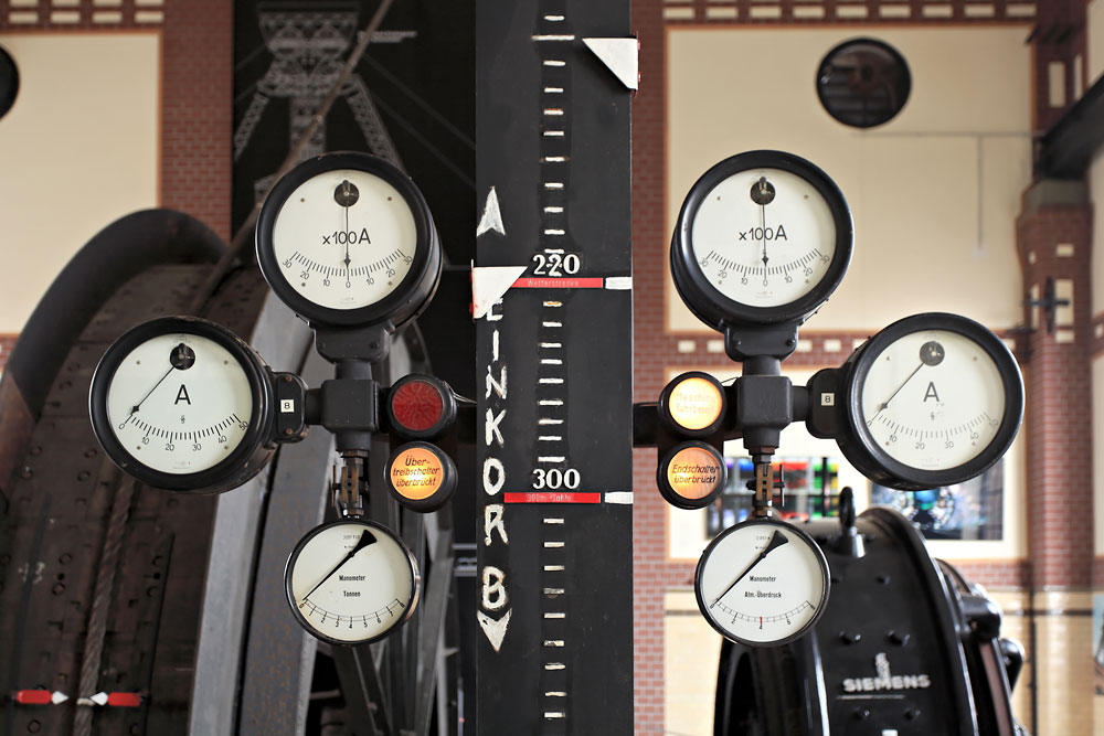 16/08/2015 | Machine d'extraction du puits n°4 : cadrans pour le machiniste sur l'indicateur de profondeur - Zeche Rheinpreußen / Moers
