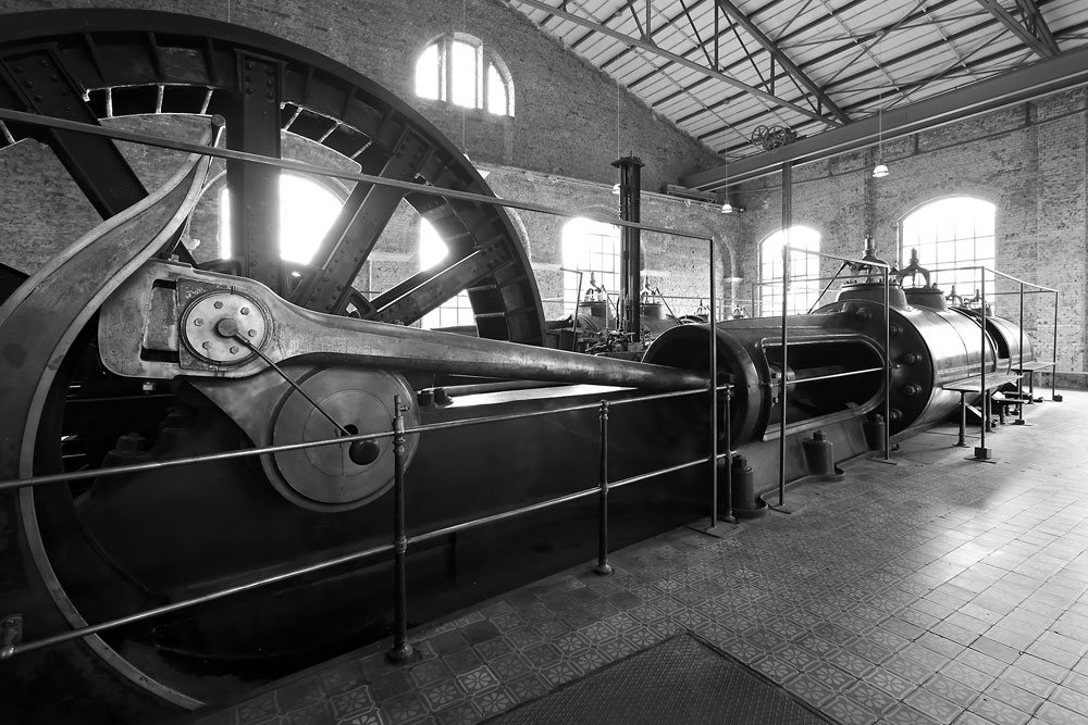 18/08/2015 | Machine d'extraction à vapeur I du puits n°1 : cylindres, bielle-manivelle et poulie Koepe - Zeche Waltrop / Waltrop