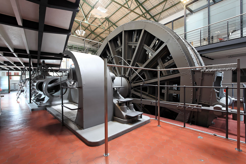 18/08/2015 | Machine d'extraction à vapeur du puits n°2 : poulie Koepe et les machoires du frein - Zeche Waltrop / Waltrop