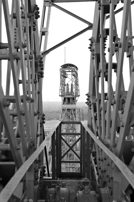 22/08/2014 | Chevalement du puits n°2 vu au travers des molettes du puits n°4 - Zeche Zollern / Dortmund-Bövinghausen