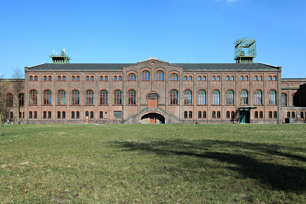 27/03/2011 | Grande salle des machines des puits 1/2, on aperçoit derrière les 2 chevalements - Zeche Zweckel / Gladbeck