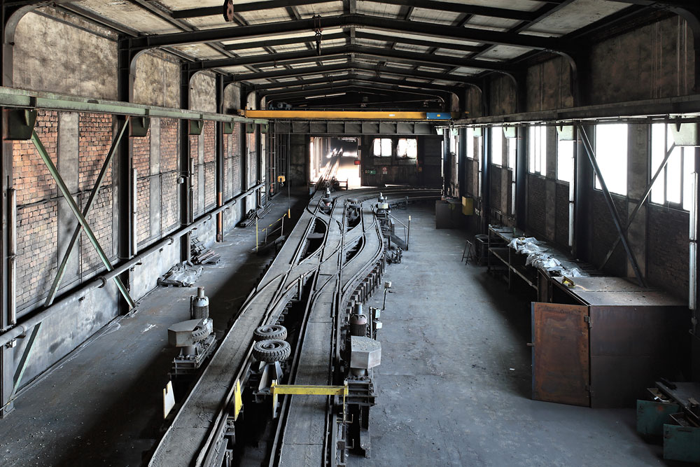 30/03/2011 | Recette jour du puits n°2 : circuit pour le retour des berlines vides vers le puits ; au fond la passerelle vers le puits n°1
