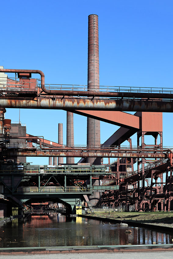 28/03/2011 | La cokerie - Le long des fours : défourneurse, cheminées et canalisations d'évacuation des gaz