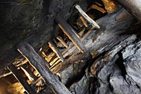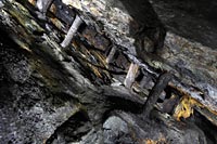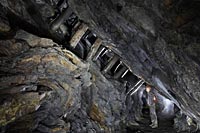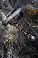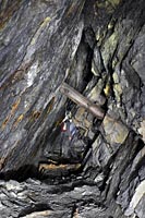 Cette petite mine a exploité une veine d'anthracite au pendage important. Pour ce faire une série de galeries ont été creusées à plusieurs niveaux de la montagne. Le développement est généralement assez faible, mais on trouve de superbes dépilages qui comportent encore tous les boisages utilisés pour l'exploitation. La veine était attaquée par le bas depuis la galerie qui servait de roulage (tailles remontantes). On imagine facilement la difficulté du travail dans cet environnement étroit, très sombre et poussiéreux.