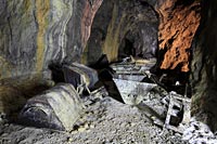 Les travaux souterrains, en chambres et piliers abandonnés, suivent le pendage assez prononcé de la couche exploitée. Des voies de roulage situées à différents niveaux de la mine permettaient l'évacuation de la pierre chargée dans des berlines Decauville. Les wagonnets du niveau le plus bas étaient remontés sur un petit plan incliné muni d'un treuil (disparu).