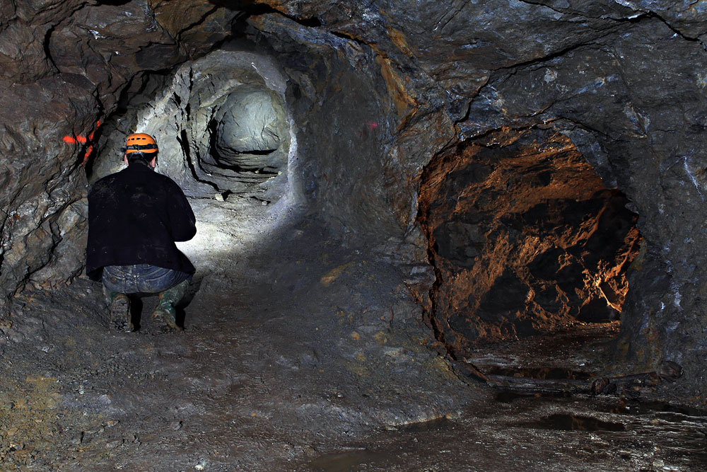 Départs de galeries, celle de gauche permet de rejoindre l'étage supérieur - Mine de fer du M