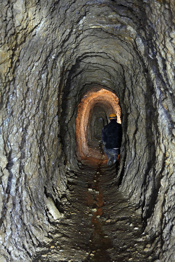 Le travers banc principal, vers l'entrée ; notez son faible gabarit - Mine de fer de L