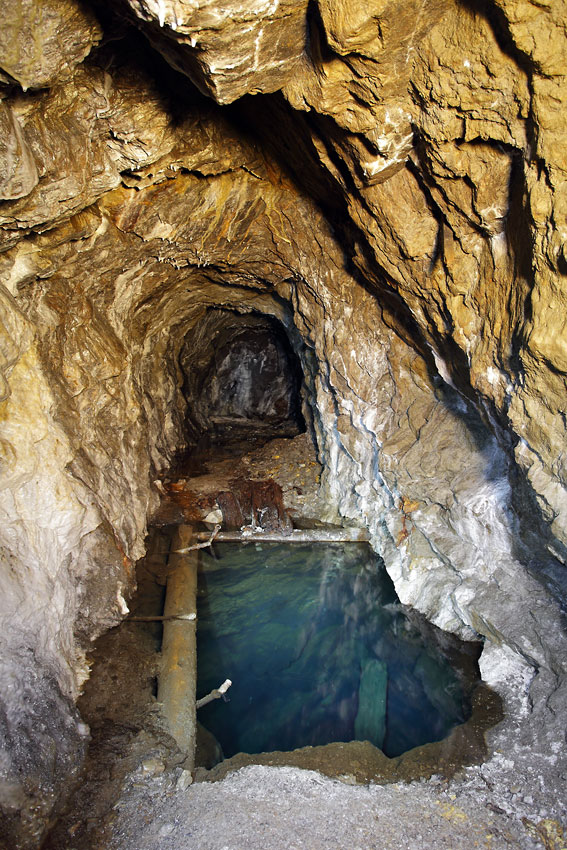 Cette galerie est coupée par un puits noyé - Mine de plomb-argentifère du LG