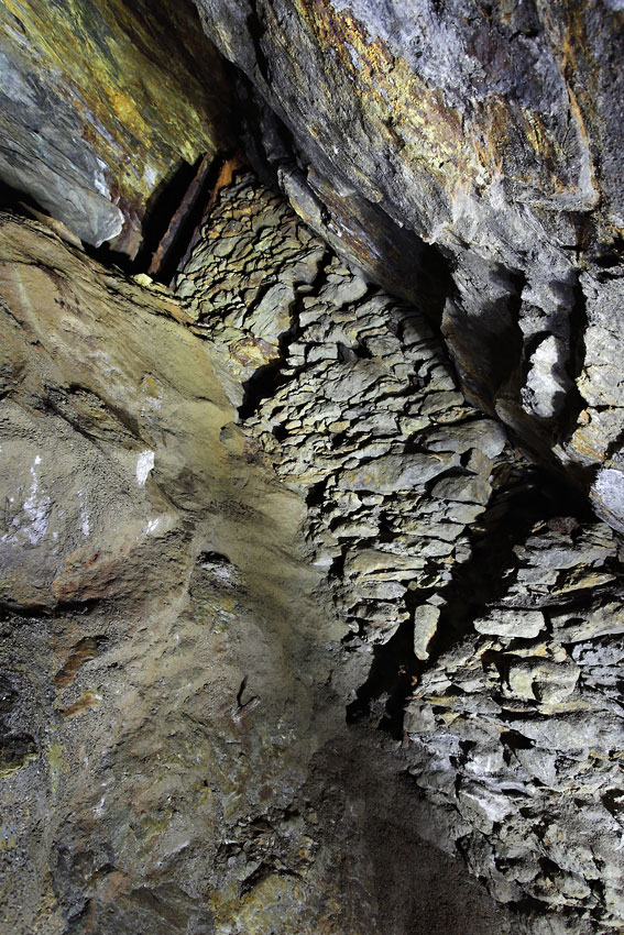 Ce dépilage subvertical a été partiellement comblé par un joli mur en pierres sèches - Mine de plomb-argentifère d'AG