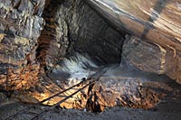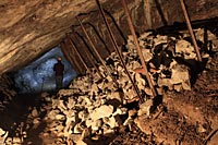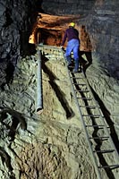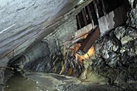 La mine a fonctionné de 1914 à 1954 ; il en était extrait environ 3000 tonnes de roches bitumineuses par an. Avec ces produits, une usine voisine fabriquait des produits pharmaceutiques, de beauté et des insecticides. Il y eut jusqu'à 35 employés au plus fort de l'activité. La mine se compose de quatre étages séparés d'une dizaine de mètres. Le pendage moyen de la couche bitumineuse est de 40 à 45°. Les niveaux supérieurs contiennent encore un peu de matériel : voies de roulage, wagonnets... Un important concrétionnement de calcite et d'oxyde de fer vient décorer planchers et parois, rendant cette mine très esthétique. Des chauves-souris nichent dans les différents niveaux ; visiter les galeries l'hiver les sortirait de leur hibernation, entraînant leur mort quasi certaine.
