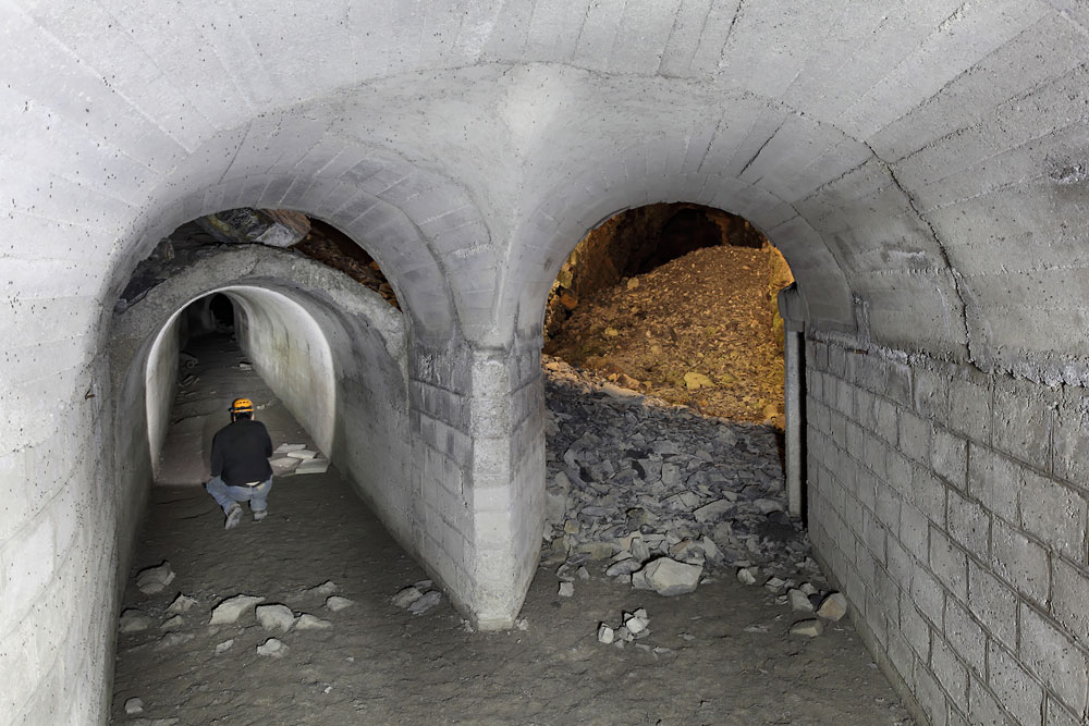 L'entrée de la carrière est constituée de tunnels maçonnés ; ils déservent trois grandes chambres d'exploitation