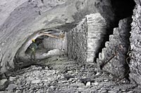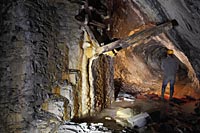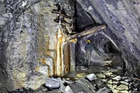 Cette carrière de pierre à ciment fut exploitée à partir de 1870 par un cimentier et homme politique jusqu'à son rachat par la société Vicat en 1920. La carrière est constituée de plusieurs longues galeries de roulage équipées de belles trémies pour le chargement de la pierre à ciment dans des wagonnets. On y trouve aussi de nombreux escaliers permettant d'accéder aux tailles des niveaux supérieurs.