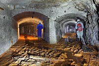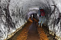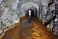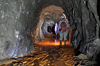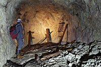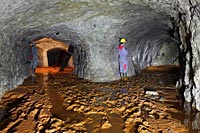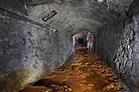 La mine «moderne» était constituée d'un puits profond de 55 mètres qui rejoignait la couche de lignite et d'un travers-banc par lequel les berlines chargées sortaient au jour. Ce travers-banc, d'une longueur d'environ 400 mètres, a pu être parcouru jusqu'à son extrémité où il rejoint la couche de lignite. Cette couche très foncée se reconnait facilement ; son pendage est compris entre 75 et 85°. Nous n'avons pas pu poursuivre notre exploration dans les galeries tracées le long du banc de lignite en raison du manque d'oxygène. Dans sa partie terminale, le travers-banc est bétonné et se sépare en plusieurs branches qui butent souvent sur des effondrements. A noter la présence d'un petit magasin équipé d'un grand lavabo.