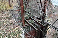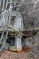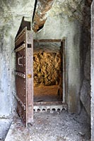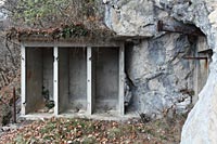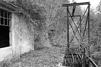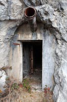 A l'extérieur il subsiste de nombreux vestiges des bâtiments de la mine : bureaux, magasins, forge, salle des compresseurs... On distingue aussi les restes de l'ancien téléphérique qui était utilisé pour descendre le lignite dans la vallée et pour le transport du personnel. Un peu plus loin se trouve la poudrière composée de quelques courtes galeries à angle droit et fermée par une belle porte blindée.