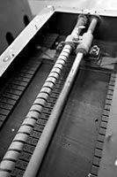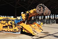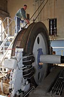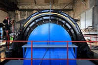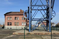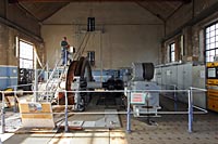 l'Association pour la Sauvegarde du Chevalement Théodore et au soutien de la Ville de Wittenheim. Après destruction du bâtiment de la recette, le chevalement a fait l'objet d'une restauration et dresse fièrement sa silhouette bleue depuis 2007. La plupart des anciens bâtiments constituant le carreau ont été réutilisés par la Société K+S dont l'activité principale est la granulation de chlorure de potassium extrait dans les mines allemandes. A noter la présence d'une jolie remise à incendie, elle aussi restaurée et classée Monument Historique. Je remercie la mairie de Wittenheim pour l'accès à la machine d'extraction.