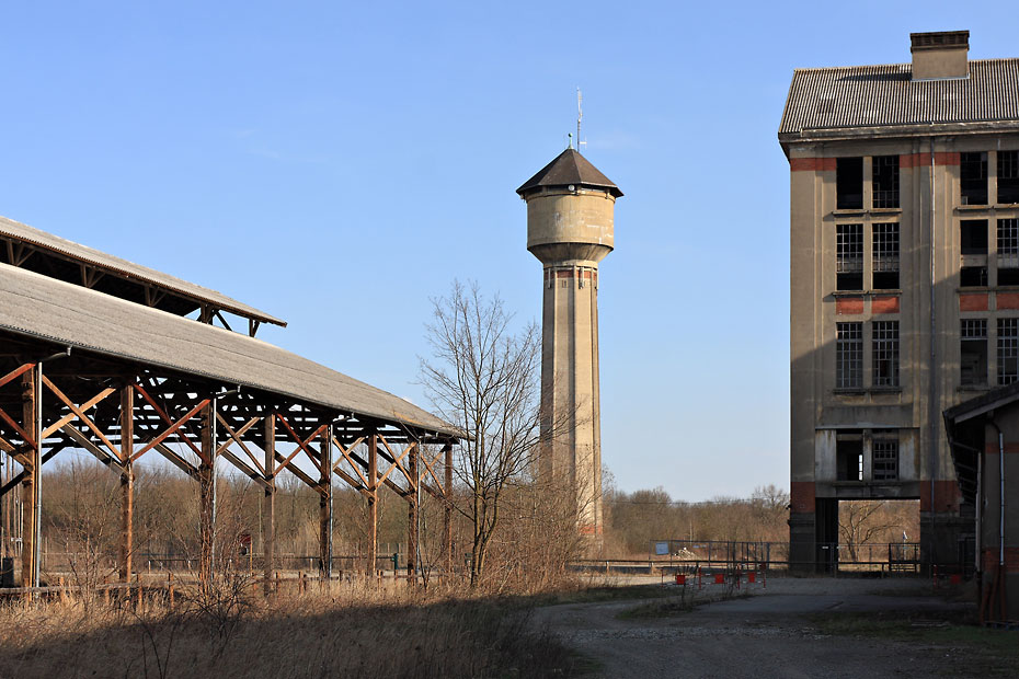 24/03/2010 | Mine Rodolphe : hangar de cristallisation (appelé 'parapluie'), château d'eau et bâtiment des mélanges