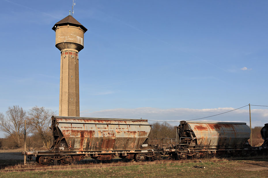 24/03/2010 | Mine Rodolphe : château d'eau et anciens wagons de transport de la potasse