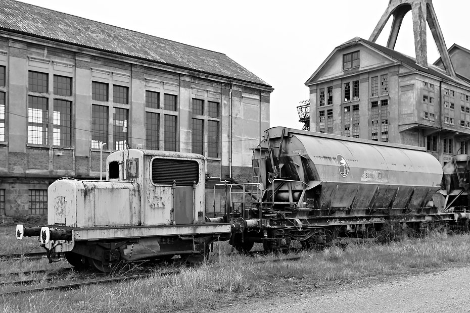 23/04/2012 | Mine Rodolphe : locotracteur et ancien wagon de transport de la potasse devant le puits Rodolphe II