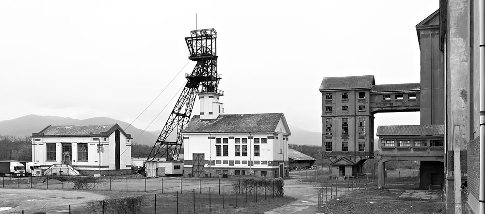 23/04/2012 | Mine Rodolphe : bâtiment de la machine d'extraction, chevalement et recette du puits I, à droite les bâtiments du puits II