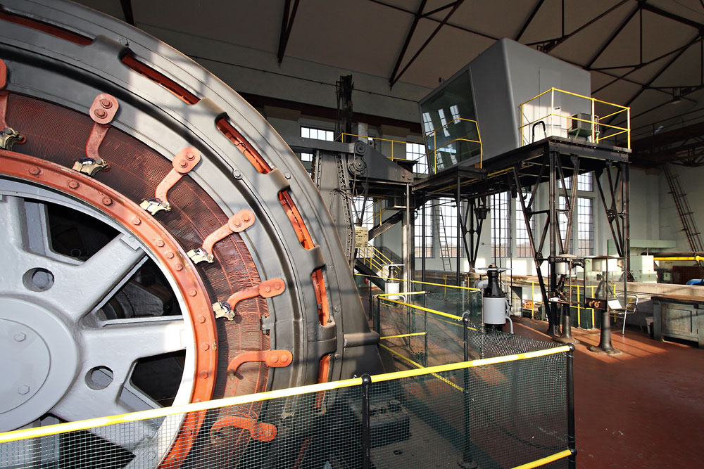 24/03/2010 | Mine Rodolphe : machine d'extraction du puits Rodolphe II : moteur Alsthom et cabine du machiniste située en hauteur