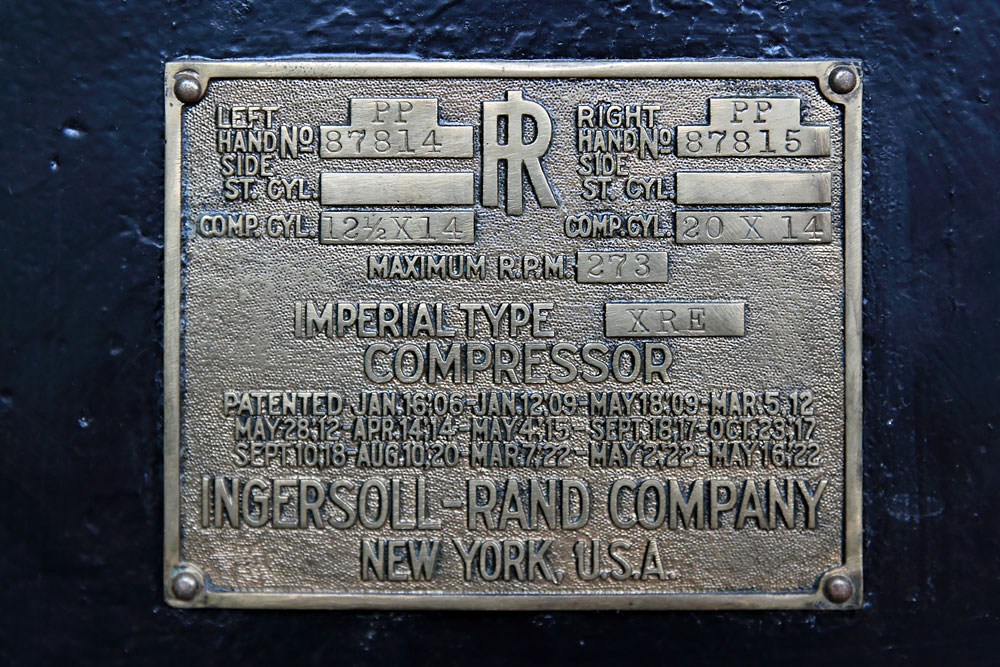 23/04/2012 | Mine Rodolphe : salle des machines du puits Rodolphe II - plaque constructeur sur un compresseur Ingersoll-Rand