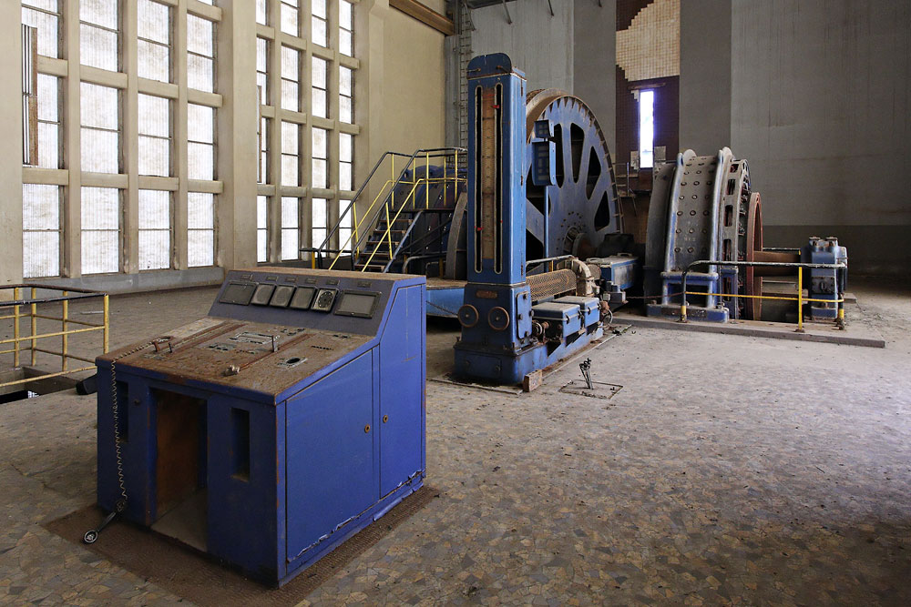 24/03/2010 | Mine Théodore : pupitre de commande et machine d'extraction Alsthom à poulie Koepe du puits Théodore