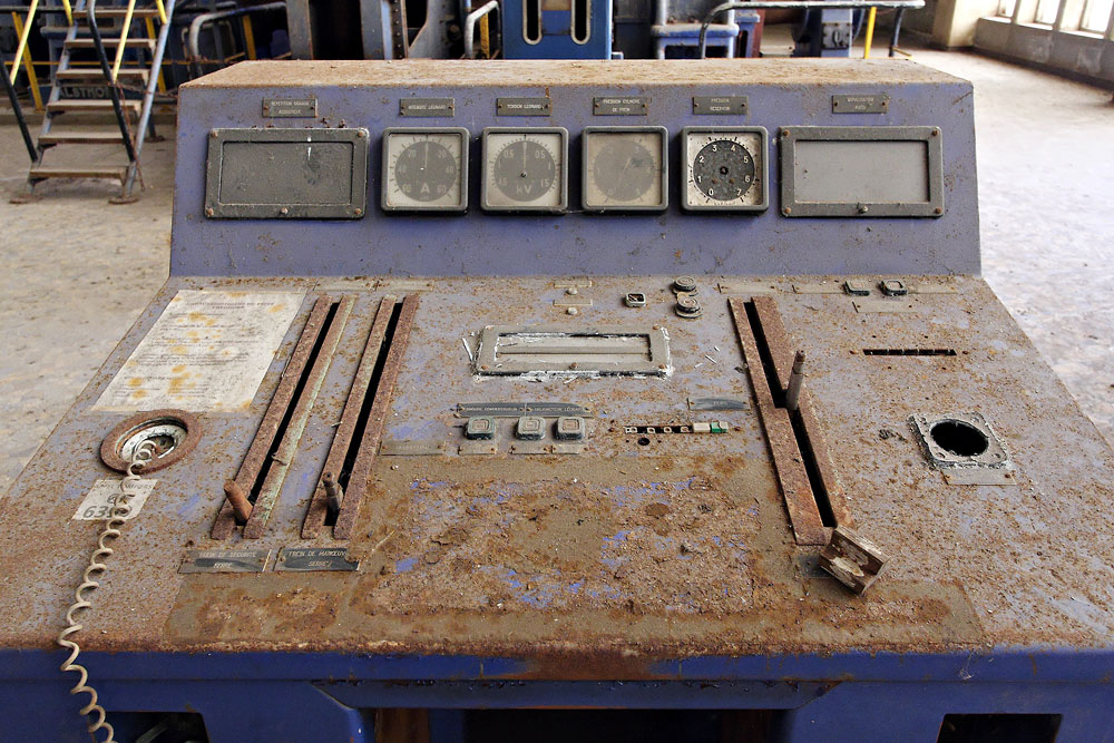 24/03/2010 | Mine Théodore : pupitre de commande de la machine d'extraction du puits Théodore